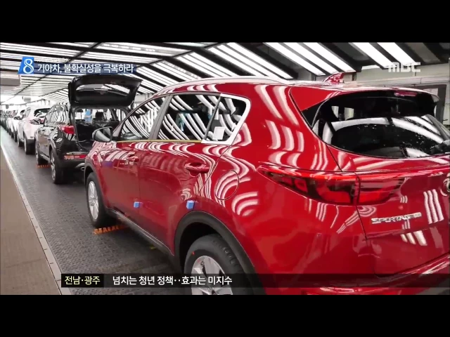 (앵커) 기아자동차는 연간 50만 대 가량을 생산하고 있는데요. 올해는 국내 정치상황과 미국 트럼프 정부 출범 등 난관이 예상되지만 품질로 글로벌 경쟁력을 확보하겠다는 게 3분의 1을 책임지고 있는 기아자동차입니다. 정용욱 기자입니다. (기자) (이펙트 5-6초 : 화면 + CG) '스포티지'와 '올 뉴 쏘울'을 주로 생산하는...