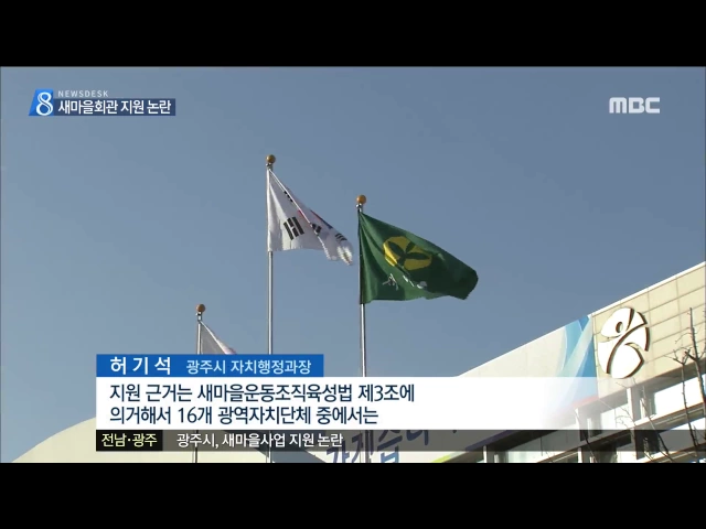 (앵커) 광주시와 광주 북구가 새마을회관 건물 건립 예산을 지원한 게 적절성 논란이 일고 있습니다. 최순실 게이트를 계기로 박정희 시대의 유산인 '새마을 운동'이 재평가되는 마당에 관변단체 건물세우는 데 거액의 혈세를 주는 건 부적절하다는 겁니다. 김철원 기자입니다. (기자) 광주 북구의 이 새마을회관 가건물은 ...