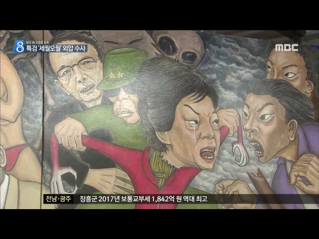 ◀ANC▶ 박근혜 정부의 국정농단 사태를 수사 중인 특검은 문화계 블랙리스트에 대해서도 고강도 수사를 이어가고 있는데요. 박근혜 대통령을 허수아비로 풍자했다 광주지역에서 전시 외압 논란이 일었던 '세월오월'에 대해서도 수사에 착수했습니다. 김인정 기자입니다. ◀VCR▶ 박근혜 대통령을 김기춘 비서실장의 조종...