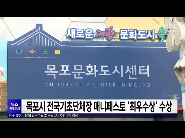 목포시가 '2024 전국 기초단체장 매니페스토 우수사례 경진대회'에서 '숨은 고수를 찾아라! 생활장인대학' 프로젝트로 지역문화활성화 분야 ‘최우수상’을 수상했습니다.목포시는 지난해 같은 분야에서 '우수상'을 수상해 2년 연속 수상으로지역문화발전 선도도시 임을 입증했다고 밝혔습니다.