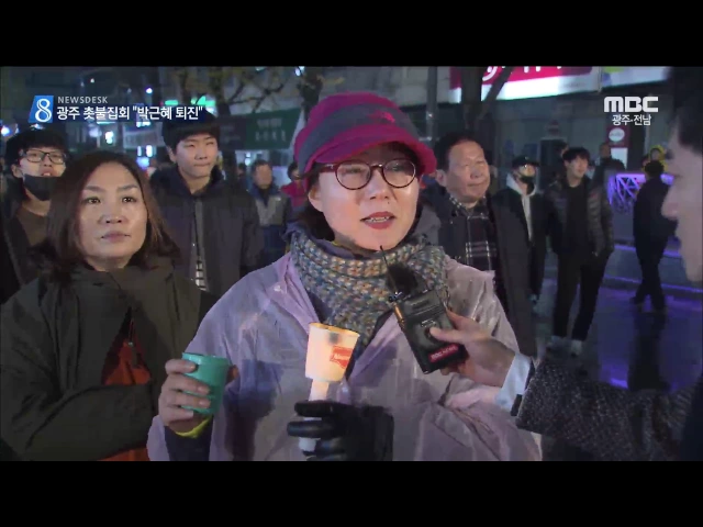 (앵커) 80년 5월의 함성이 울려퍼졌던 광주 금남로에서 시민들이 또다시 '대통령 퇴진'을 외쳤습니다. 거듭된 대규모 촛불집회에도 아랑곳하지 않는 박근혜 대통령에 대해 시민들은 평화롭지만 단호하게 분노를 표출하고있습니다. 이계상 기자.. (기자) 5.18민중항쟁의 역사적인 장소에서 시민들이 만든 대형현수막이 펼쳐...