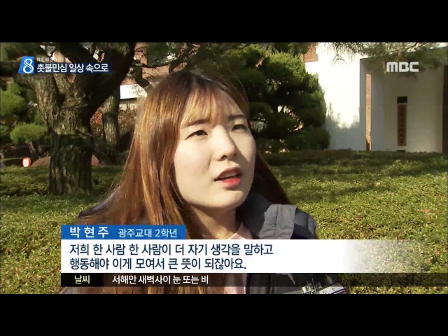 (앵커) 매주 토요일마다 백만명의 시민들이 차가운 거리로 나서 박근혜 대통령 하야를 요구하는 촛불 집회를 이어가고 있는데요. 이렇게 단체로 이루어졌던 퇴진 운동이 이제는 시민들의 일상 속으로 녹아들고 있는 모습입니다. 송정근 기자입니다. (기자) "저도, 여러분도, 그리고 그 누군가도 행동해야 합니다." 페이스북...