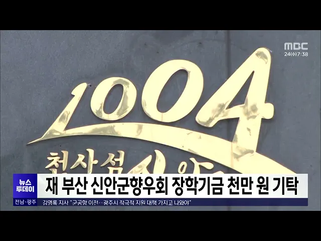 재 부산 신안군향우회는 최근(20일) 신안군청을 방문해 고향의 인재육성에 사용해 달라며 장학기금 천만원을 신안군장학재단에 기탁했습니다.지난 2000년 1월 설립된 재부산 신안군 향우회는 현재 정기택 회장을 비롯해 44명의 회원이 고향 후배 양성을 위한 장학기금 기부 등 애향심을 높이기 위한 활동을 꾸준히 펴고 있...
