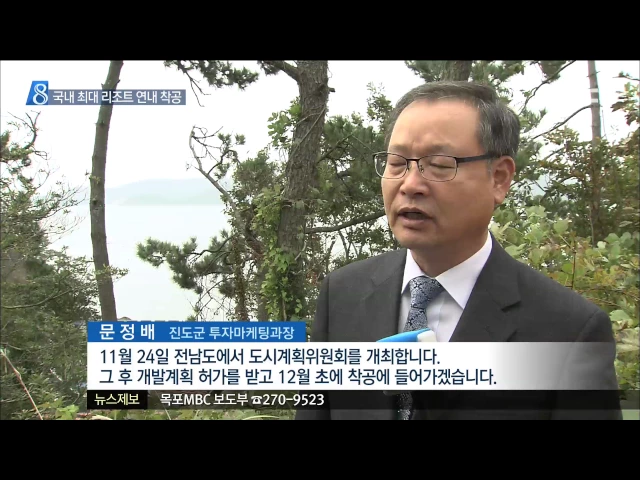 ◀ANC▶ 진도에 국내 최대 규모의 리조트가 들어섭니다. 걸림돌인 군사시설 문제가 해소되면서 올 연말내 착공할 예정입니다. 보도에 문연철 기자입니다. ◀END▶ ◀VCR▶ 푸른 바다와 섬들이 그림처럼 펼쳐진 진도군 의신면 초사리. 삼면이 바다로 둘러쌓인 이 곳에 대규모 리조트가 들어섭니다. 콘도와 호텔, 공원 등...