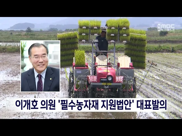 농약, 비료 등 필수농자재 가격이 폭등할 경우 구입비용을 국가가 지원하는 법안이 발의됐습니다.국회 이개호 의원이 대표발의한 '필수농자재 지원법안'에 따르면 필수 농자재 가격 폭등으로 농업경영 위기에 직면한 농업인에게 국가가 구입비용을 지원해 농산물의 안정적인 생산을 돕는 역할을 하도록 하고 있습니다.이개...