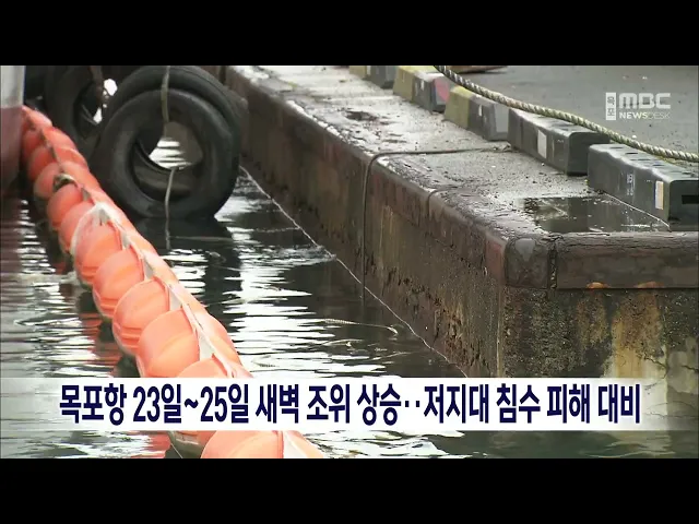 대조기인 오는 23일부터 25일까지 새벽 2시에서 6시사이 바닷물 수위가 5m 이상 상승이 예상되면서 해안 저지대 주민들의 대비가 필요합니다.목포시는 침수피해 방지를 위한 비상근무반을 편성하고 배수펌프장, 배수갑문, 수문에 대해 사전 점검을 실시하고, 특히 침수 경계 지역인 해안저지대에는 차량 주·정차를 하지 않...