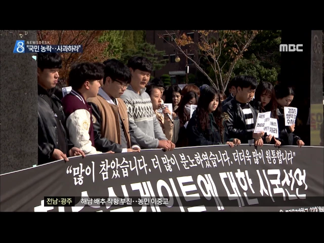 ◀ANC▶ 전국 각계각층의 시국선언이 확산되는 가운데 지역 학생들도 '더 이상 참을 수 없다'며 거리로 나섰습니다. 전남도의회도 박근혜 대통령의 사과를 요구하며 성역없는 수사를 촉구했습니다. 김진선 기자입니다. ◀END▶ ◀VCR▶ 목포대학교 총학생회도 시국선언에 동참했습니다. 전국 백여 개 대학이 시국선언에 ...