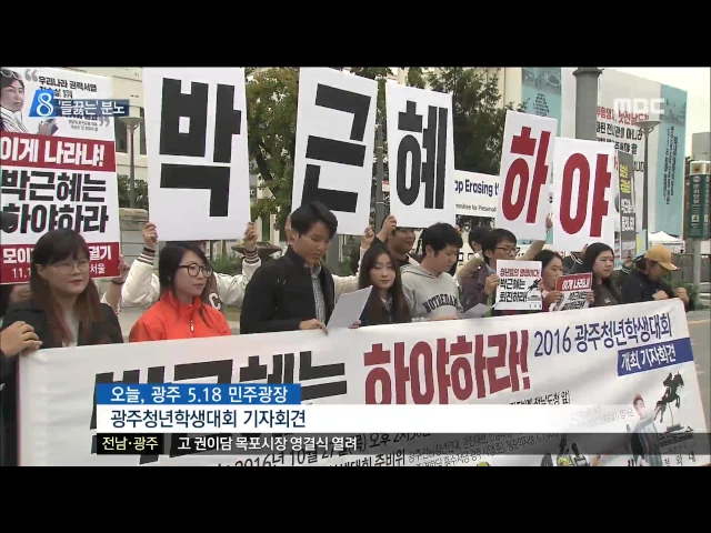 ◀ANC▶ 최순실 씨가 국정에 개입했다는 이른바 '최순실 게이트'에 국민들은 참담함과 분노가 뒤섞인 반응을 보이고 있습니다. 대학가에서는 학생과 교수들의 시국선언이 이어졌고 대통령 하야 요구 역시 터져나오고 있습니다. 김인정 기자입니다. ◀VCR▶ 5.18 민주광장에 박근혜 대통령과 최순실 씨의 가면 퍼포먼스가 ...