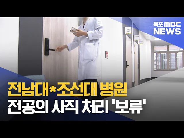 ◀ 앵 커 ▶정부가 요청한 전공의 사직 처리 마감일이 하루가 지났습니다.전공의들은 여전히 복귀 의사를 밝히지않고 있는 가운데전남대, 조선대학병원 측은 전공의 사직 처리 여부를 보류하고 있습니다.보도에 김영창 기자입니다.◀ 리포트 ▶정부의 의대 증원에 반발해 140여명의 전공의가 떠난 조선대병원 입니다.정부가 전...