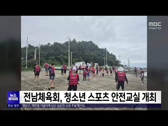 전라남도체육회가 대한체육회의 공모사업에 선정돼3년 연속 청소년스포츠안전교실을열고 있습니다.청소년스포츠안전 교실은청소년들이 실제 스포츠 활동 중 겪을 수 있는위험 상황 대처 능력을 키우기 위해응급처치 교육과 조별 조난 훈련 등을 진행하는 프로그램입니다.이번 스포츠안전교실은도내 17개교 120명을 대상으로...