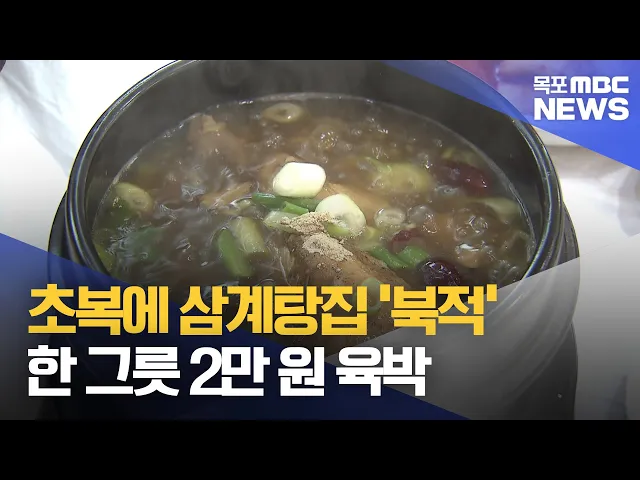 ◀ 앵 커 ▶오늘(15)은 여름 무더위 시작을 알리는절기상 초복입니다.무더위에 보신하러 식당을 찾았다가격 보고 놀라신 분들 적지 않으실 텐데요.복날 가장 많이 찾는닭고기 유통 가격은 내리는 추세인데 삼계탕 한 그릇은 2만 원에 가까워서민들의 주머니를 무겁게 하고 있습니다.김단비 기자입니다.◀ 리포트 ▶뚝배기에 담...