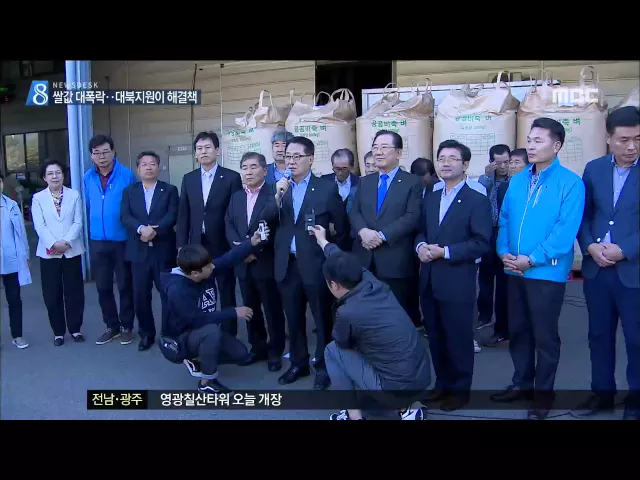 ◀ANC▶ 수확기 쌀값이 대폭락하면서 정부가 매입량을 늘리는 등 대책을 마련하고 있지만, 쌀값 하락은 계속되고 있습니다. 대북지원을 통해 쌀 재고량을 줄이는 것이 가장 현실적이지만, 정부는 대북지원을 고려하지 않고 있어 농민들의 반발이 거셉니다. 신광하 기자가 보도합니다. ◀VCR▶ 수확기 쌀값 하락에 성난 농...