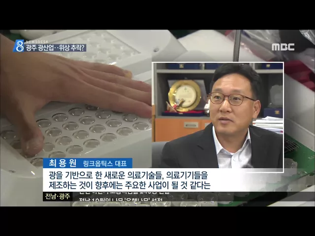 (앵커) 자동차, 가전과 함께 광산업은 한때 광주의 주력산업으로 호황을 누렸습니다. 하지만 지금은 그 위상이 많이 추락해 안팎으로 위기에 처하면서고전하고 있습니다. 정용욱 기자입니다. (기자) LED를 이용해 수술용 전등이나 피부 재생기 등을 생산하고 있는 광기반 의료기기 제조업체입니다. 광수동소자나 광코드 등 ...