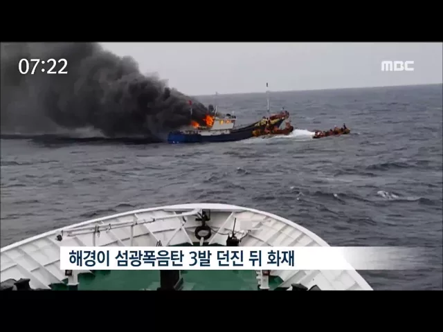 무허가 조업 중 화재 난 중국어선 선원 압송(R)