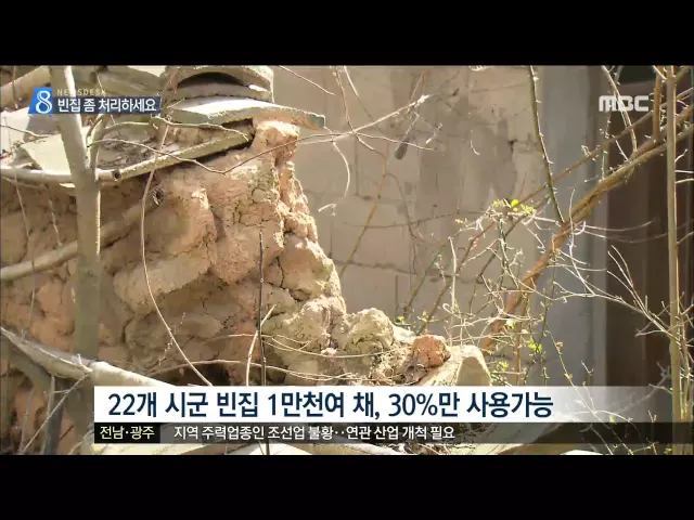 ◀ANC▶ 오랜만에 찾은 시골마을 지나면서 흉가로 바뀌어버린 빈 집들 한 두 채쯤은 보셨을 겁니다. 빈집들이 고향마을의 골칫거리가 되고 있는데, 온 가족 모인 김에 빈집을 어떻게 하는 게 좋을 지 이야기해보는 건 어떨까요. 양현승 기자입니다. ◀END▶ ◀VCR▶ 국도 1호선 주변의 한 마을. 마당이 꽤 넓은 이 집은 ...