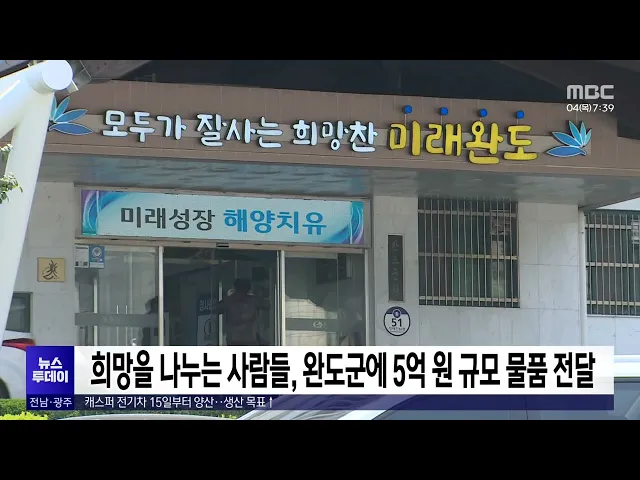 '사단법인 희망을 나누는 사람들'은 최근(28일) 사회복지시설과 취약계층을 위해 써달라며 5억원 규모의 생활용품을 완도군에 전달했습니다.'희망을 나누는 사람들'이 전달한 생활용품은 주방세제와 샴푸, 린스, 치약 등 15개 품목으로, 이들은 지난 2천18년 완도군과 협약하면서 장학증서 전달식을 가진 이래 매년 완도군...