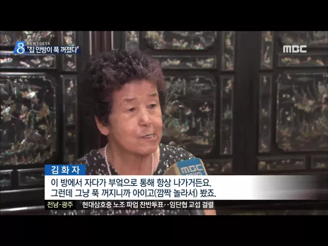 ◀ANC▶ 주로 도로에서 나타나는 땅 꺼짐 현상, 이른바 싱크홀이 주택 안방에서 발생했습니다. 싱크홀 이후 주택 붕괴 위험까지 높은 가운데 여수시가 원인 조사에 나섰습니다. 김종태 기자가 취재했습니다. ◀END▶ 여수시 남산동의 한 주택 며칠전 이 집 안방의 바닥이 직경 80cm, 깊이 1미터 정도로 갑자기 푹 꺼졌습...