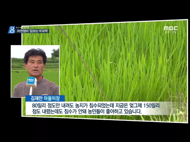 ◀ANC▶ 예로부터 치산치수는 국가 경영의 근본으로 여겨졌습니다. 해마다 수천억 원을 들이는 하천정비사업이 잡초 때문에 제대로 효과를 내지 못합니다. 최진수 기자가 보도합니다. ◀END▶ ◀VCR▶ 내년까지 4년 동안 40억 원을 들여 1점9킬로미터를 정비하는 유호천 정비사업, 마지막 공사구간이 남아있긴하지만 장...