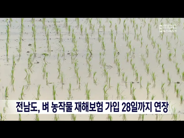벼 농작물 재배보험 가입신청 기간이 일주일 연장됐습니다. 전라남도는 당초 지난 21일까지였던 가입기간을 벼 이모작 이앙이 늦어지면서 오는 28일까지 일주일 연장하기로 했습니다. 벼 재해보험 가입은 가까운 지역농협에서 가능합니다.