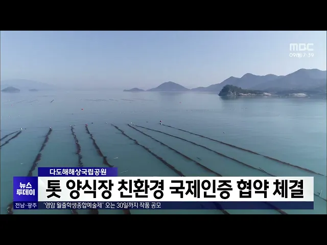 다도해해상국립공원서부사무소는 최근(5일)진도군, 진도톳생산자협의회와 함께 해조류 톳 양식장의 친환경 수산물 국제인증을 위한 업무협약을 체결했습니다.이번 협약은 전복 양식장에 이어 내년에는 톳 양식장까지 국제인증을 확대해, 지속가능한 친환경 양식 환경을 조성하는 것을 목표로양식장 환경개선과 어민 교육을 ...