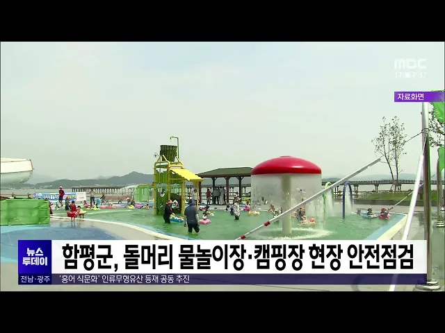 함평군이 여름철을 맞아 돌머리 어린이 물놀이장 등을 대상으로 현장 안전점검에 나섰습니다. 집중 안전점검 대상 시설물인돌머리 어린이 물놀이장과 돌머리캠핑장을 상대로 한 이번 점검에서는제세동기와 물놀이 시설물 등시설 유지관리 상황을 살피고 물놀이 안전요원 교육 등 안전 관리 상황을중점적으로 확인했습니다...