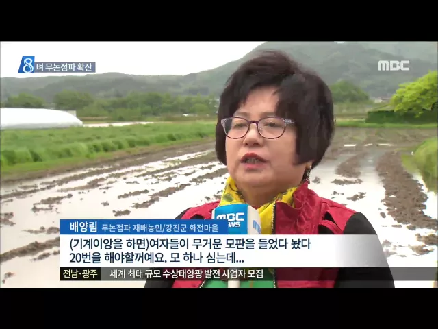 ◀ANC▶ 쌀 시장 개방으로 농가들의 한숨은 땅이 꺼질세라 깊어만 가고 있는데요. 노동력과 생산비를 획기적으로 줄일 수 있는 벼 무논점파 재배기술이 전국적으로 빠르게 확산되고 있습니다. 문연철 기자가 보도합니다. ◀END▶ ◀VCR▶ 써래질을 마친 논을 이앙기가 바삐 오갑니다. 골을 파고 그 곳에 모가 아닌 싹 튼...