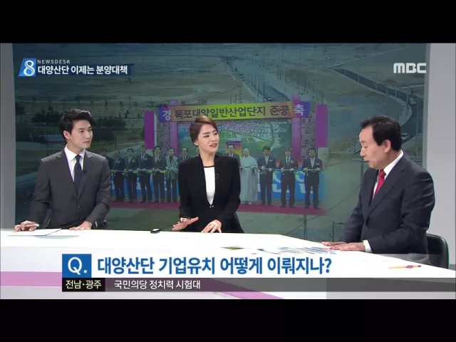 ◀ANC▶ 방금 리포트에서 보셨듯이 대양산단은 이제 준공이 됐고 분양만이 남아있습니다. 분양 대책 등 대양산단 준공 이후 현안들을 박홍률 목포시장께 직접 들어보겠습니다. 안녕하세요? 질문1] 말도 많고, 탈도 많았던 대양산단 드디어 3년2개월 만에 준공이 됐습니다. 시장께서 느끼는 감회는 남다를 것 같습니다. 문...