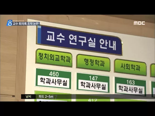 (앵커) 교수 채용을 놓고 또 말썽입니다. 교수들 사이에서 '회의록을 조작했다' '안했다' 공방까지 벌어졌습니다. 전남대학교에서 일어난 일입니다. 송정근 기자입니다. (기자) 지난 3월초에 작성된 전남대 정치외교학과의 교수 회의록입니다. 전체 교수 8명 중 과반인 5명이 참석해 교수 정원 규모를 논의했다고 기록돼 있...