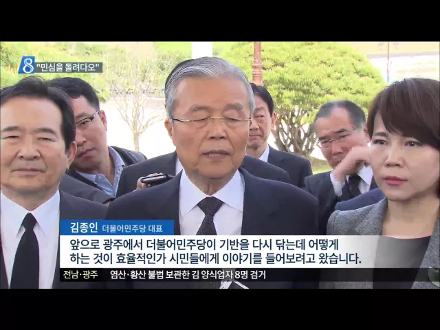 (앵커) 4.13 총선 이후 처음으로 광주를 찾은 더불어민주당의 김종인 대표는 호남 민심이 돌아오지 않으면 계속 비상상황이고, 정권 교체도 어렵다고 말했습니다. 광주 민심을 잡기 위해서 총선 때 꺼내들었던 삼성 카드를 재확인하기도 했습니다. 보도에 김인정 기자입니다. (기자) 총선에서 승리했지만 호남에서는 참패한...