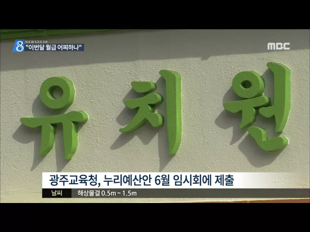 (앵커) 누리과정 예산이 바닥나면서 광주지역 유치원과 어린이집의 보육대란이 현실화되고있습니다. 광주교육청이 유치원 누리과정 예산조차 세우지 않은데다 어린이집 역시 다음달이면 지원금이 끊길 상황입니다. 이계상 기자.. (기자) 어린이집 누리과정 예산 책임을 놓고 교육부와 시도 교육청이 힘겨루기를 하면서 어린...