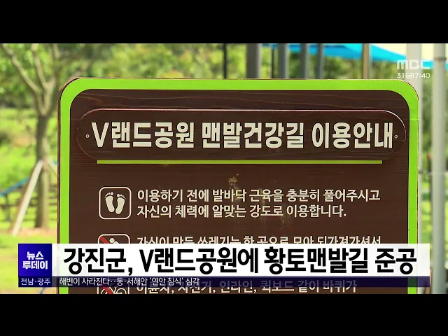 강진군은 지역민들의 건강권 확보를 위해보은산 V랜드공원 일원에황토맨발길을 조성했습니다. 황토맨발길은 폭 1.8미터에 200미터 길이로다음달 4일부터 개방되며 강진군은 공원 전체를 맨발로 거닐 수 있도록 추가로 400미터 길이를 조성할 예정입니다.