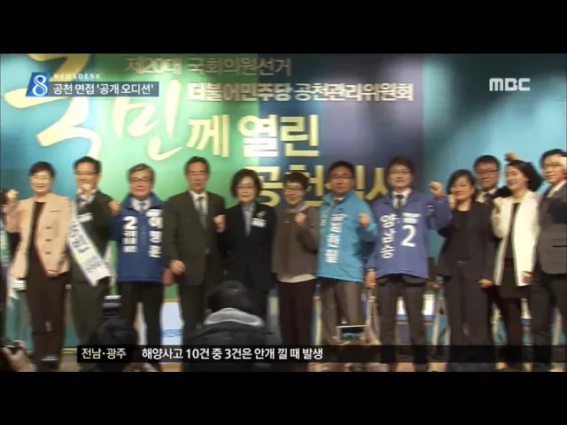 (앵커) 더불어민주당이 공천 후보자들을 대상으로 공개 오디션 형태의 면접을 실시했습니다. 국민의당은 현역 20% 이상 컷오프 방침을 정해 당내 갈등이 커지고 있습니다. 한신구 기자의 보도 (기자) 인터넷으로 생중계된 더민주 광주 서구갑 공천후보 심사 현장입니다. 후보들이 제한된 시간 안에 출마 동기와 자신의 경쟁...