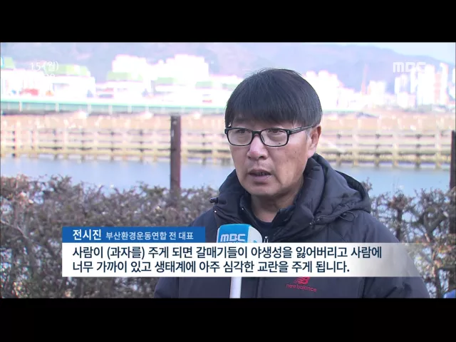 ◀ANC▶ 요즘 부산지역 해수욕장에서는 갈매기에게 과자를 주는 모습을 어렵지 않게 볼 수 있습니다. 겨울철 바다 관광객들에게는 또다른 볼거리라고 할 수도 있겠습니다만, 갈매기의 야생성을 해칠 수도 있어서 쉽게 보고 넘길 일은 아니라고 합니다. 김유나 기자가 보도합니다. ◀VCR▶ 한겨울 해수욕장, 추운 날씨지만...