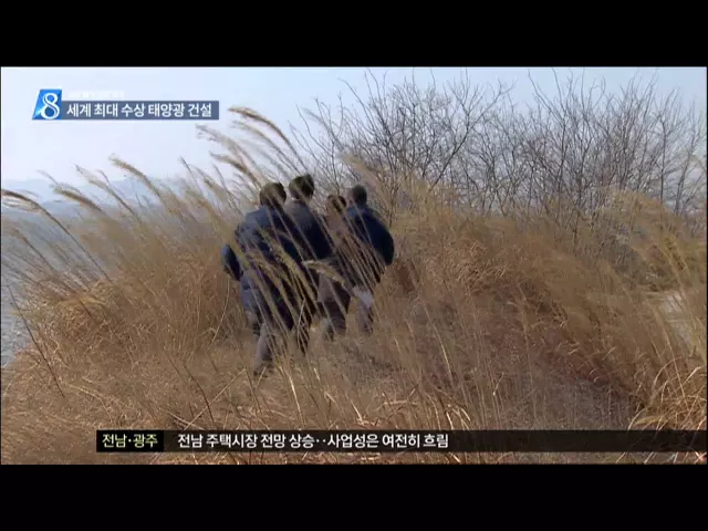 ◀ANC▶ 농어촌공사가 영암호에 세계 최대 규모의 수상 태양광 발전사업자를 공모할 계획입니다. 외국에서도 수상 태양광발전은 초기 단계여서 선진 사례로 주목됩니다. 최진수 기자가 보도합니다. ◀END▶ ◀VCR▶ 저수지 수면 위에 태양광 전지판이 운동장처럼 펼쳐져 있습니다. 지난해 11월 말에 가동에 들어간 이 발...