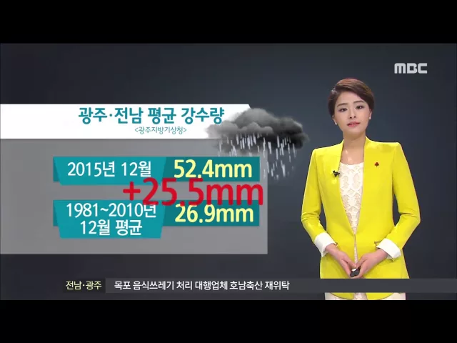 ◀ANC▶ 최근 추위가 이어지고는 있지만 이번 겨울, 전반적으로 참 따뜻합니다. 지난해 12월, 전남지역 기상을 살펴봤더니 평균기온이 5.8도로 평년보다 2도 가까이 높았습니다.c/g1] 특히 평균 최저기온도 평년보다 2도 이상 높았습니다. 1973년 이후 가장 높은 겁니다.c/g2] 비도 자주내려, 평년보다 두배 많은 강수량을...