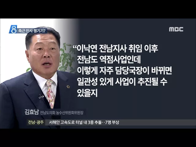 청렴도 최하위 평가를 받은 전라남도가 최근 인사를 단행했지만 청렴도를 높이고 변화를 가져오기에는 역부족이라는 평가입니다. 전라남도교육청이 보육대란을 막기 위해 유치원 누리과정 예산의 추경 편성을 검토하고 있습니다. 더불어민주당 탈당파의 안철수 쏠림현상이 두드러지고 있습니다. 추가 탈당인사들의 다음 행...