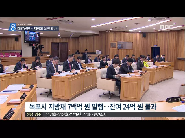 대양산단 부채상환 문제가 목포시의 재정을 옥죄고 있습니다. 박홍률 시장이 2019년 일괄 상환안을 통과시켜줄 것을 호소하고 나섰습니다. 광주와 전남북지사들이 오늘 새누리당 지도부와 내년도 예산협의를 벌였습니다. 신세계 이마트가 목포점과 순천점 등에서 노조설립를 방해했다는 의혹을 받고 있습니다. 영산호와 영...