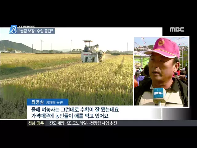 밥쌀용 쌀 수입과 쌀시장 개방을 반대하는 농민들의 요구와 관련해 정부는 불가피하다는 입장을 보이고 있습니다. 정부는 쌀 관세화 이후 밥쌀용 쌀은 수입되지 않고 있지만 관세화율 513%를 유지하기 위해서는 쌀 수입을 이어갈 수 밖에 없고, 수입 억제로 쌀값을 지탱하는 건 효과적이지 않은 것으로 보고 있습니다. 정치...