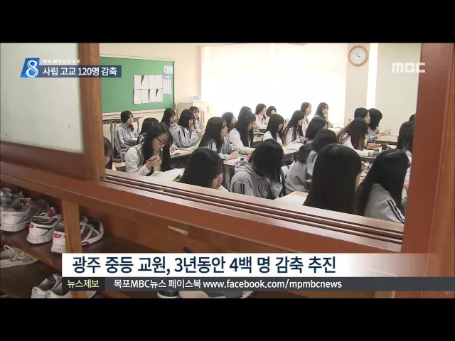 (앵커) 학령기 인구 감소에 따라 교원 정원 감축이 현실화되고 있습니다. 당장 내년부터 광주지역 사립 중고등학교는 상당수 정원 감축이 불가피해졌습니다. 이계상 기자.. (기자) 광주시교육청이 사립 중*고등학교에 전달한 공문입니다. 감사원의 감사 결과에 따라 광주지역 사립고 교원 120명을 내년부터 단계적으로 감축...