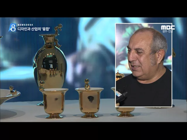 ◀ANC▶ 광주에서는 지금 디자인비엔날레가 열리고 있는데요, 전시 작품이 해외 매장에서 판매를 앞두고 있습니다. 디자인과 산업의 경계를 허물고 있는 현장을 김인정 기자가 다녀왔습니다. ◀VCR▶ 조그만 사람들이 도자기 위에 올라간 금도금 작품입니다. 곧 대량 생산을 앞두고 있습니다. 해외 유명 디자이너가 디자...