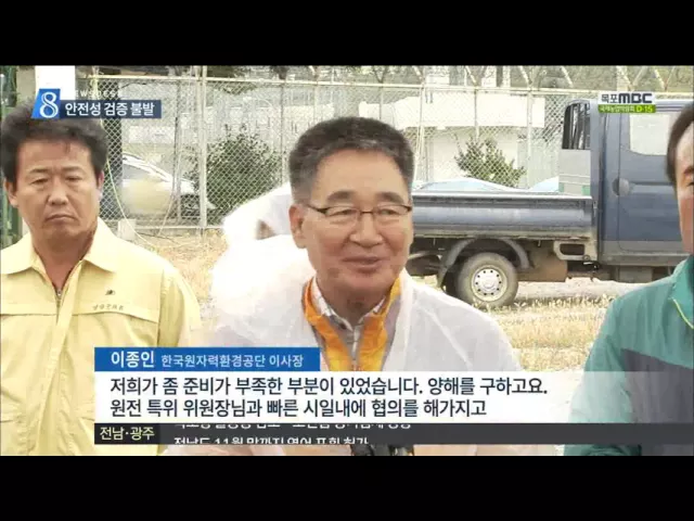 (앵커) 포화 상태에 이른 한빛원전 폐기물을 경주 방폐장으로 운송하는 운반선의 첫 시범운항이 무산됐습니다. 준비소홀과 기상악화로 검증단이 승선조차 못하면서 논란이 되고 있는 안전성 검증이 불발로 끝났습니다. 김인정 기자입니다. (기자) 한빛원전 물양장 밖 1.5 킬로미터 지점에 대기하고 있는 방사성 폐기물 전용...