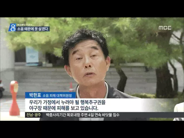 (앵커) 우리의 야구장 응원 문화는 노래부르고 소리치고.. 한마디로 화끈하죠.. 그런데 야구장 옆 주민들에게는 시끄러운 소음인가 봅니다. 주민들이 정상적인 생활이 힘들다며 국내에서 처음으로 소음 피해 소송을 냈습니다. 송정근 기자입니다. (기자) 기아 타이거즈와 넥센 히어로즈의 16차전이 열리던 날. 8천 8백명의 ...