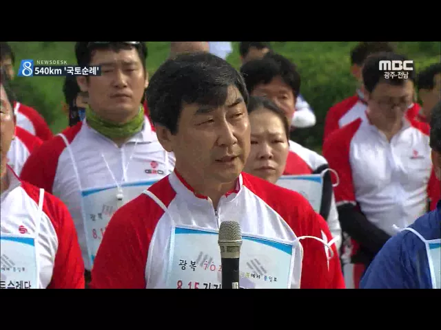 (앵커) 광복 70주년을 맞아 남북통일과 새로운 한일관계 정립을 위해 여,야가 국토 순례에 나섰습니다. 이들은 광주를 출발해 임진각까지 540킬로미터를 5박 6일동안 순례하며 선조들의 독립운동정신을 기리게 됩니다. 김철원 기자입니다. (기자) ◀SYN▶ '광복에서 통일로' 화이팅 이종걸 원내대표와 조원진 새누리당 부...