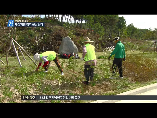 ◀ANC▶ 재정지원 일자리사업은 생활이 어려운 가정의 생계 안정을 돕고 생산적 일자리를 만들어 지역경제를 활성화하는 사업입니다. 하지만 해마다 규모가 줄고 사업 목표도 제대로 살리지 못하고 있습니다. 최진수 기자가 보도합니다. ◀END▶ ◀VCR▶ 전라남도의 상반기 재정지원 일자리 사업에 참여한 인원은 천8백...