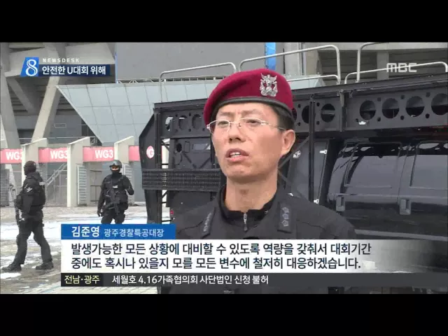 (앵커) 유니버시아드대회의 성공과 실패에 대한 평가를 하는 데는 여러가지 기준이 있겠지만 대회를 얼마나안전하게 치르느냐에도 성패가 달려 있습니다. 안전한 U대회를 치르기 위해 곳곳에서 안간힘을 쓰고 있습니다. 김철원 기자입니다. (기자) 광주 유니버시아드대회 주경기장에 초소형 비행물체, 드론이 나타났습니다....