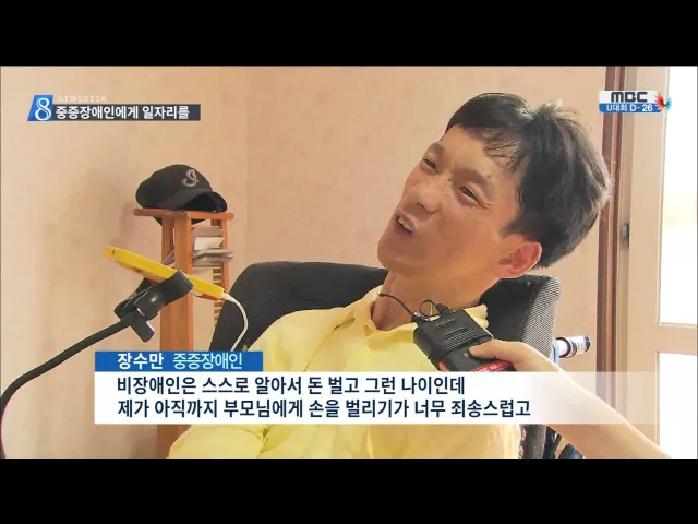 (앵커) 중증장애인들에게 일자리는 어떤 의미일까요. 세상으로 나올 수 있는 통로, 그리고 자립할 수 있게 하는 가능성과 동의어라고 합니다. 공공기관의 모범이 절실합니다. 김인정 기잡니다. (기자) 중증장애인 박종선 씨는 장애인센터에서 상담가로 일하며 다른 장애인들의 자립을 돕는 업무를 맡고 있습니다. 늦은 나이...
