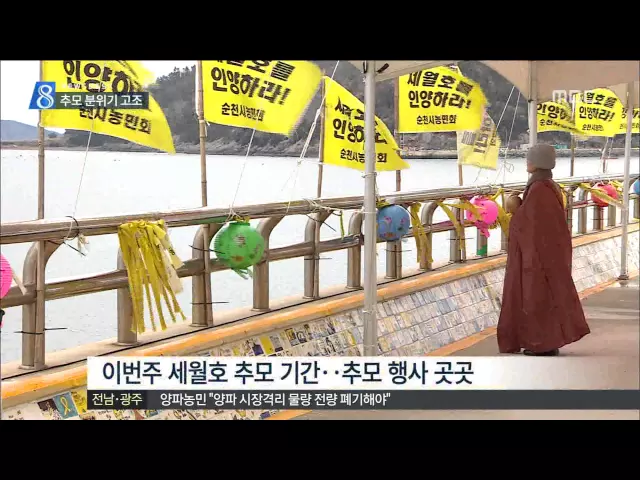 세월호 참사 1주기를 앞두고 추모 분위기가 고조되고 있습니다. 진도 팽목항에는 추모객들의 발길이 이어지고 있습니다. 전남지역 특성화 고교 실습생 상당수가 전공과 무관한 곳에서 실습을 받고 있는 것으로 드러났습니다. 완도군이 전복 등 해조류의 해외시장 개척에 적극적으로 나서고 있습니다. 미국으로 3천억 원 어...