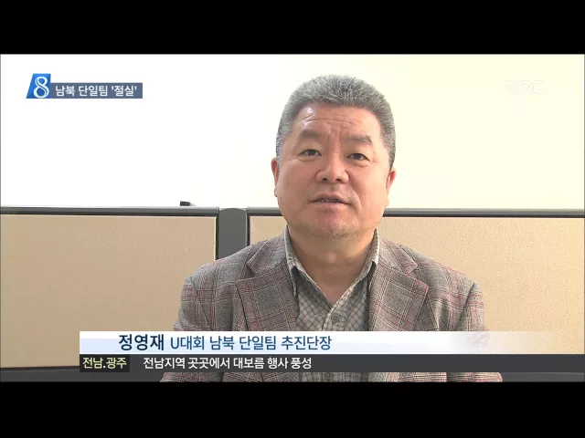 (앵커) 광주 유니버시아드 대회가 어느덧 넉달 앞으로 다가왔습니다. 대회 흥행 카드로 주목받고 있는 남북 단일팀 구성을 위해 광주시가 끊임없이 공을 들이고 있습니다. 무엇보다 정부 지원이 절실하다는 지적입니다. 이계상 기자.. (기자) 유니버시아드대회가 대학생들의 스포츠축제라는 점에서 세계의 이목을 끌기엔 다...