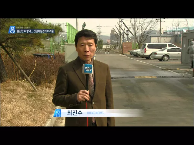 ◀ANC▶ 전남도내에서만 지난 해 68건이 발생한 조류인플루엔자가 올들어서도 벌써 15건을 기록하고 있습니다. 자치단체마다 방역 작업에 매달리고 있지만 감염 위험은 곳곳에 도사리고 있습니다. 최진수 기자가 보도합니다. ◀END▶ ◀VCR▶ 차량 무선인식장치가 전광판에 축산관련 차량을 오고 있다고 알립니다. 등록...