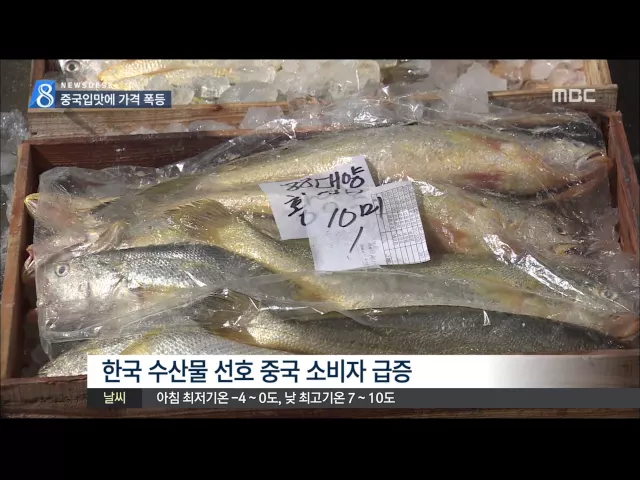 ◀ANC▶ 자국내 먹거리에 불안감을 느낀 중국 소비자들이 해외로 눈길을 돌리면서 우리 수산물 위판 가격이 크게 뛰고 있습니다. 중국이 손을 대면 황금고기로 변한다는 우스갯소리가 나돌 정도입니다. 양현승 기자가 취재 ◀END▶ 냉동 저장고를 드나드는 지게차가 분주합니다. 포장중인 수산물은 달고기. 설대목에 중국...